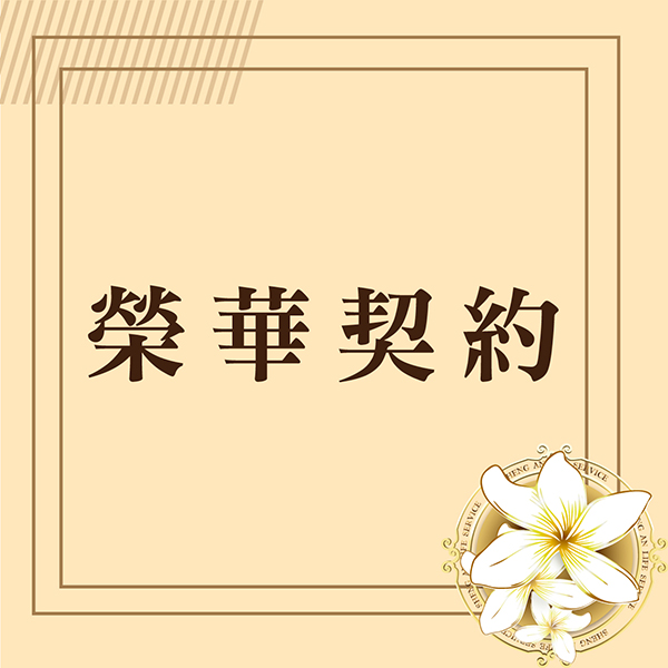 此契約服務專為適合中大型家庭,家族人數約在50~60人之間,在一切都具足之下,不失莊重、不浪費,在聖安生命團隊的用心服務,用最高的品質來提供每一位親人,用最誠摯的心情為親人送行。 榮華契約專屬 1.大型治喪流程表1座 2.家奠奠禮祭品1份 3.高級靈車-賓士加長型 4.陣頭-賓士佛祖車(前導車) 備註: 上述費用未包含:政府相關規費、其他宗教儀式、家屬餐飲部份、祭品類、百貨類